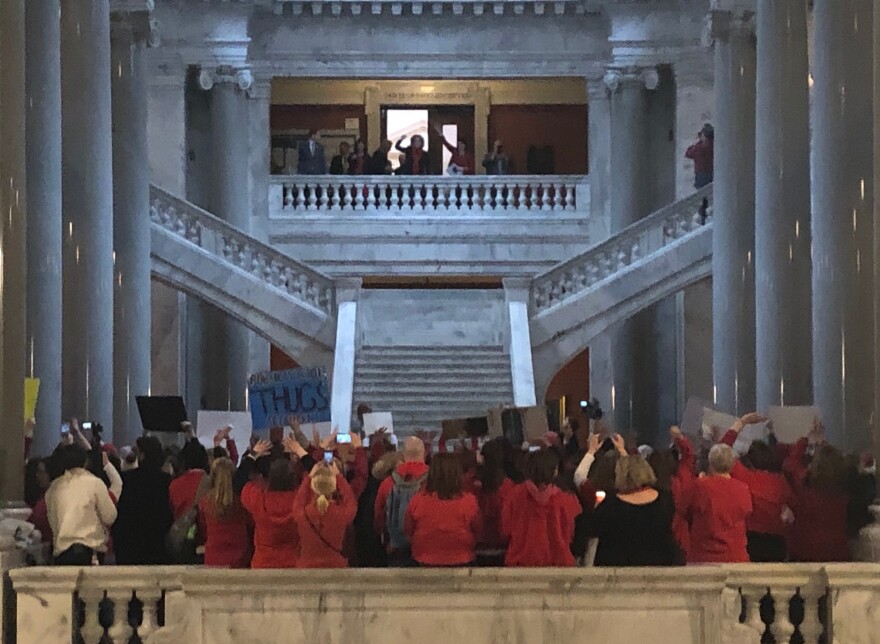 On the protesters' radar are bills introducing tax credits for donors to private school scholarships — a move demonstrators fear will eat away at public schools resources — and a measure reworking the teacher pension board, among others. Kentucky Education Association President Stephanie Winkler said, as is often the case late in the session, the measures are moving targets.