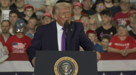 President Donald Trump spoke for over an hour during a trip to northern Kentucky Wednesday. The president used the speech to attack incumbent GOP Rep. Thomas Massie in his own his own district while boosting his primary challenger Ed Gallrein, whom he invited onstage.